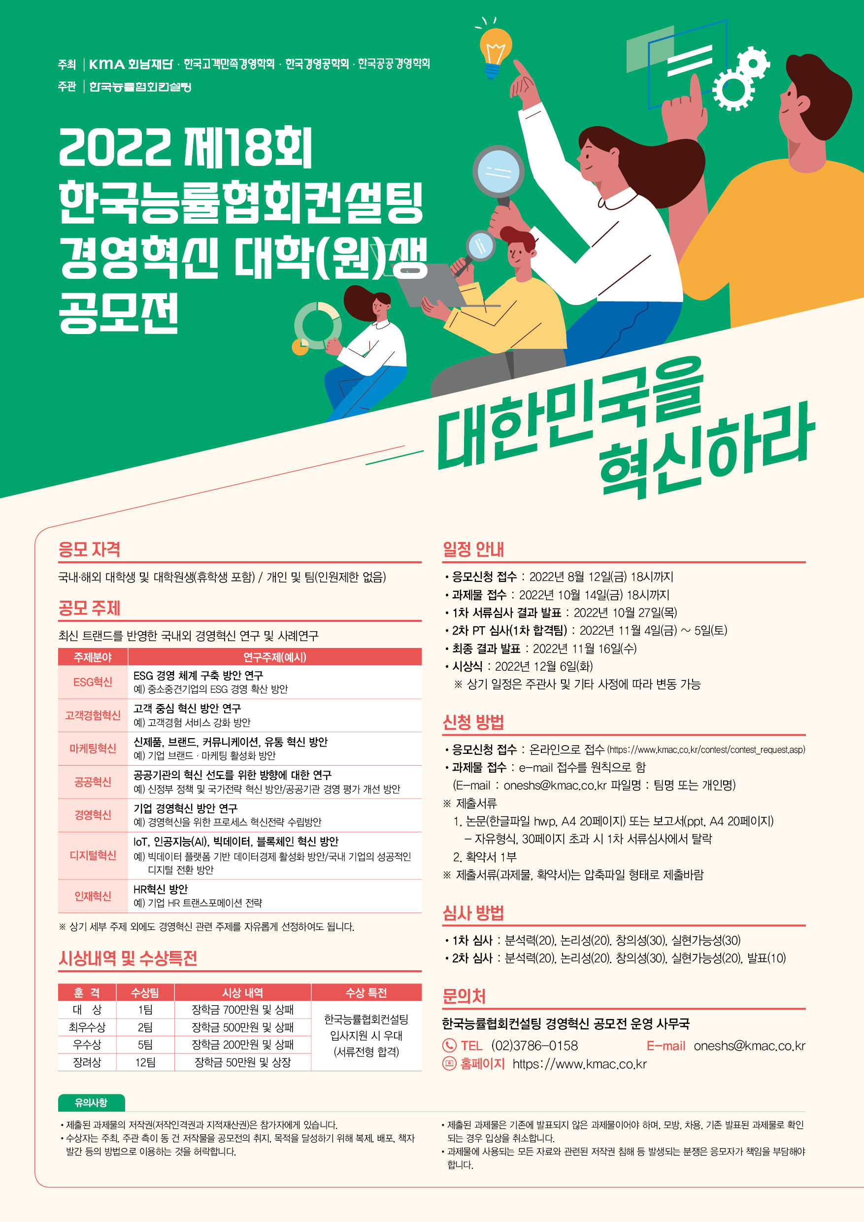 ▶ 한국능률협회컨설팅 입사지원 시 우대 (서류전형 합격) ▶ 응모작의 현장 활용 시 컨설팅 참여기회 |