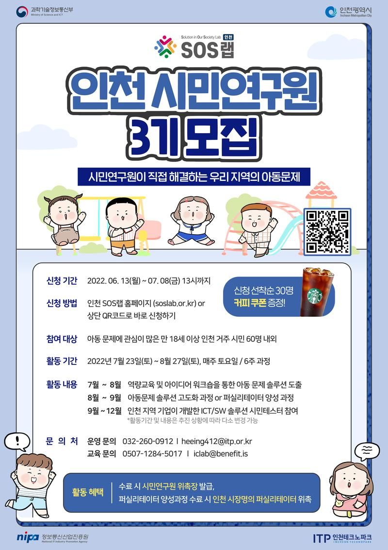 인천 SOS랩에서 시민연구원 3기를 모집합니다!