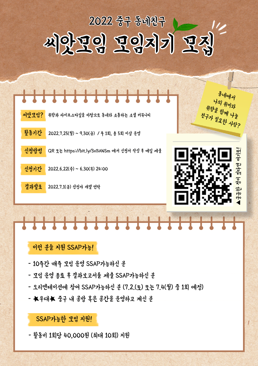 2022 중구 동네친구 씨앗모임 “동네 모임 삽가능!"