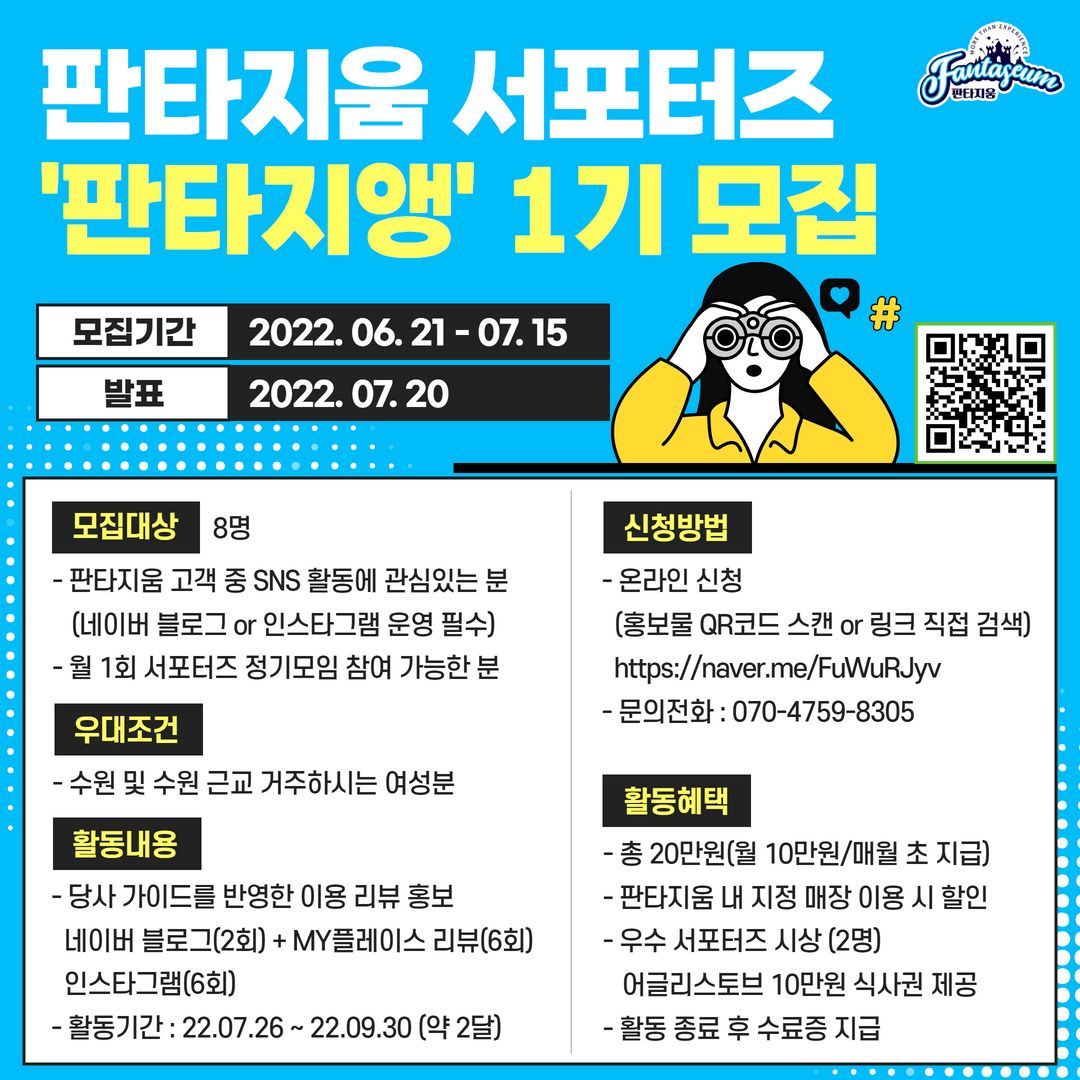 수원 영통에 위치한 복합몰 '판타지움'에서 서포터즈를 모집합니다.