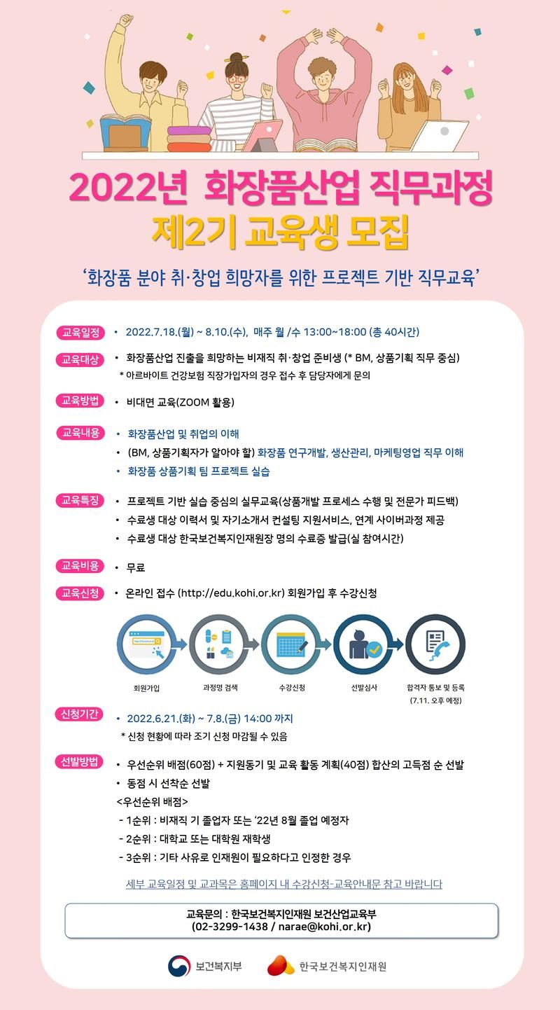 <화장품산업 직무과정 교육생 모집 안내>