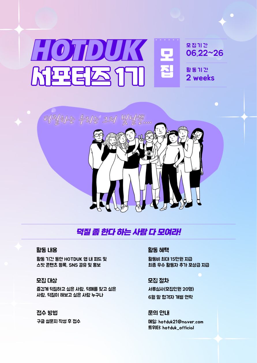 신규 덕질 앱 HOTDUK과 함께 할 서포터즈를 모집합니다.