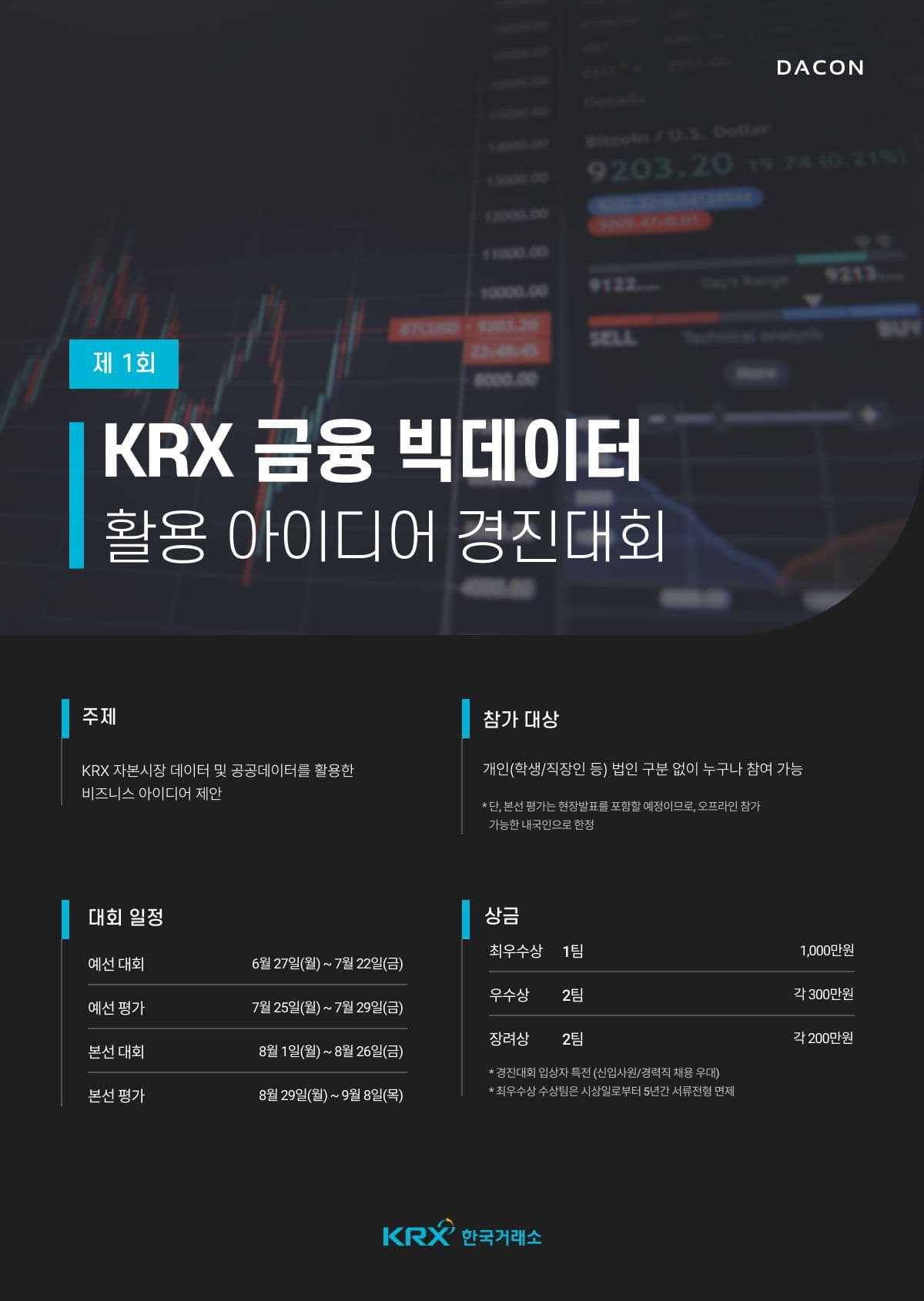 - 최우수상 수상팀 팀원은 수상일로부터 5년간 KRX 신입직원 입사 지원 시 서류 전형 면제