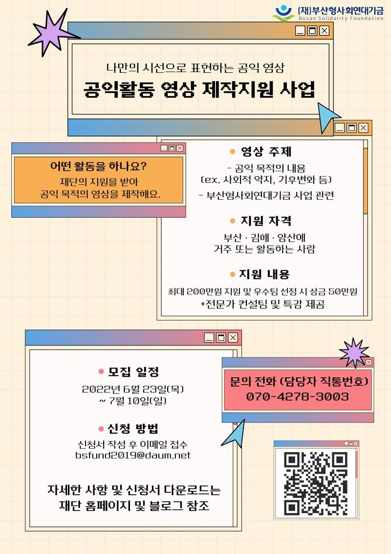 부산형사회연대기금에서 공익활동 영상 제작지원 사업 참여자를 모집합니다.