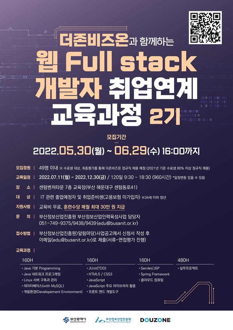 [채용연계형] 더존비즈온 웹 Full stack 개발자 취업연계 교육과정 2기 교육생을 모집합니다.