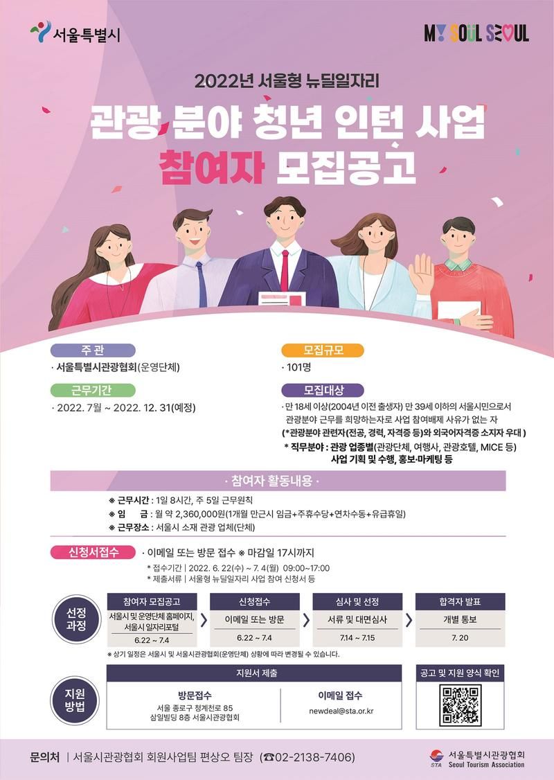 ○ 사 업 명 : 2022년 서울형 뉴딜일자리 관광분야 청년 인턴 사업