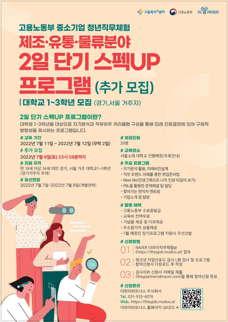[고용노동부] 중소기업청년직무체험 프로그램 제조·유통·물류 2일 단기 스펙UP 프로그램 참여자 모집