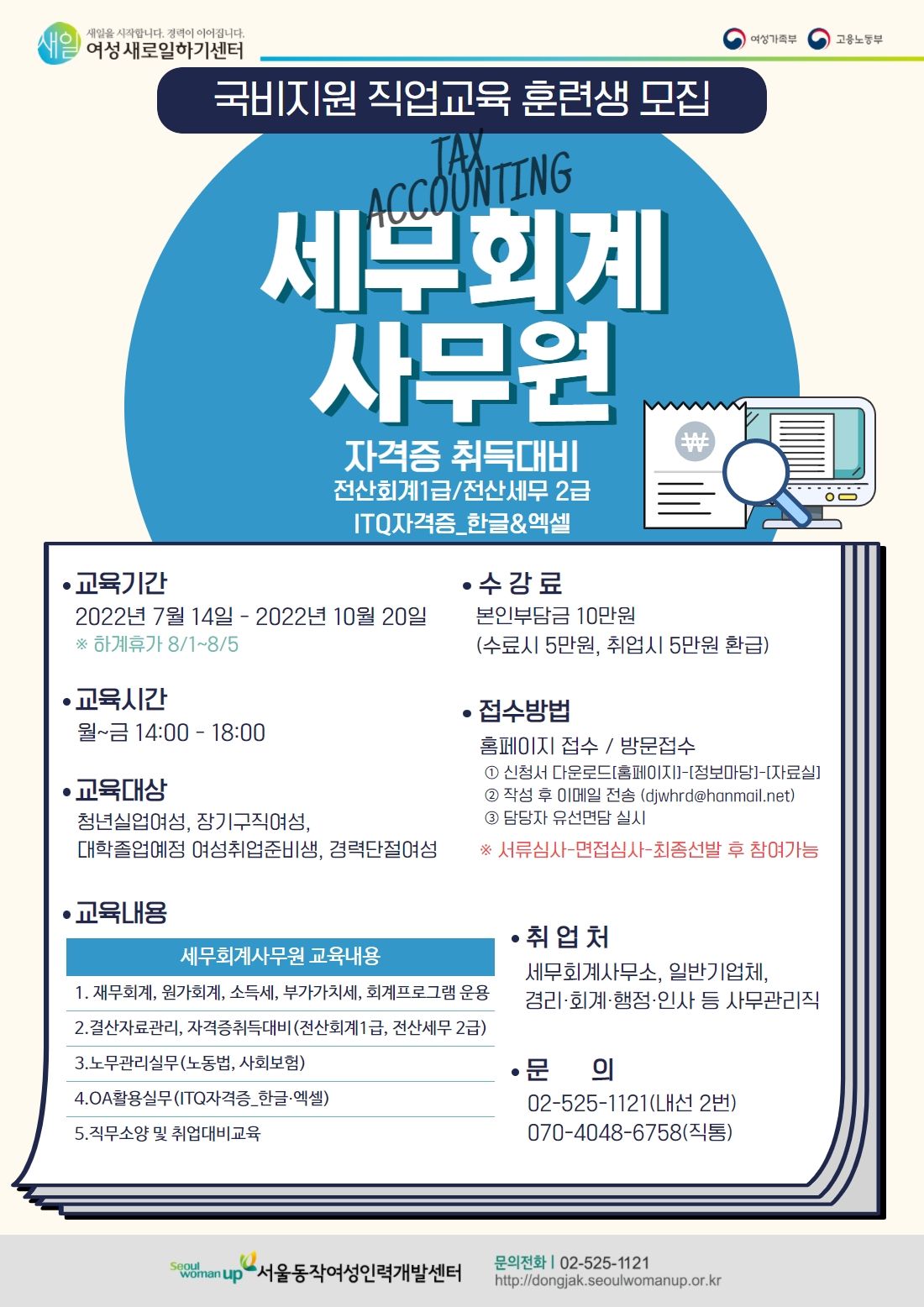 국비지원 직업훈련교육 ‘세무회계사무원’ 참여자를 모집합니다.