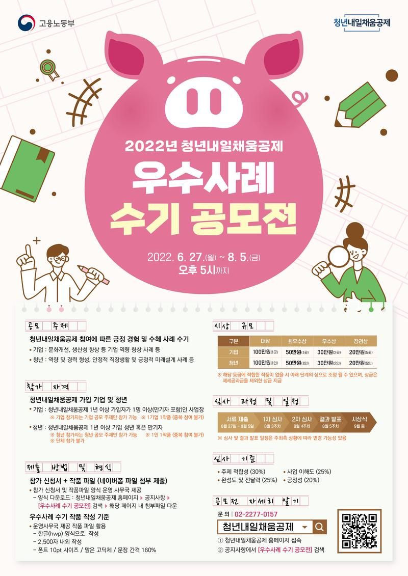 검색창에서 [청년내일채움공제] 검색 후 공지사항에서 [우수사례 수기 공모전]을 검색해주세요.