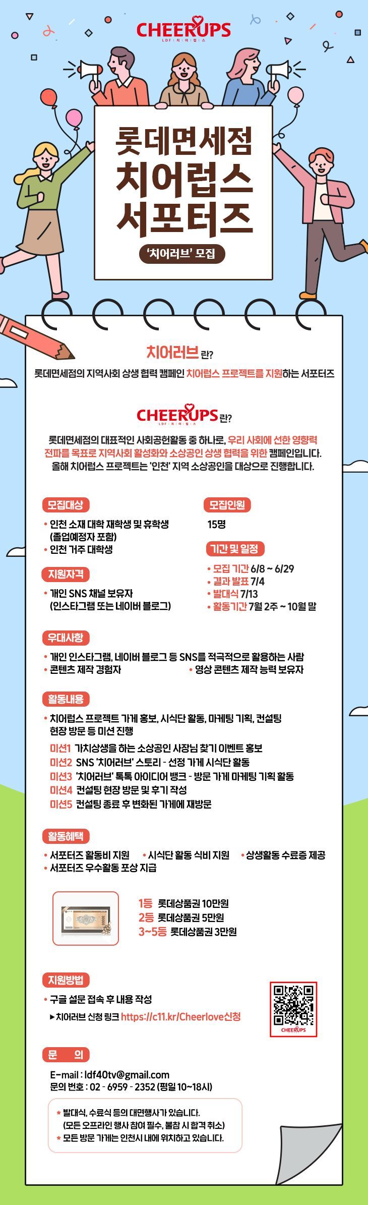 롯데면세점의 지역사회 상생협력 캠페인 치어럽스 프로젝트를 지원하는 서포터즈로, 치어럽하는 사장님과 함께하는 사랑의 공동체를 의미합니다.