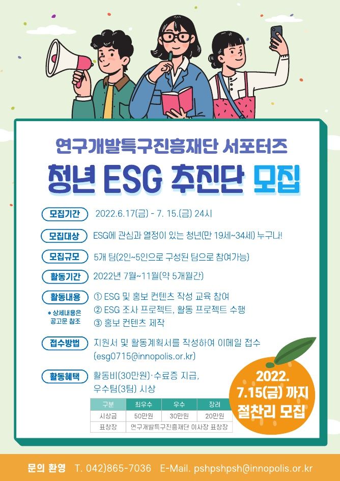<연구개발특구진흥재단 ESG 서포터즈 「청년 ESG 추진단」 모집 공고>