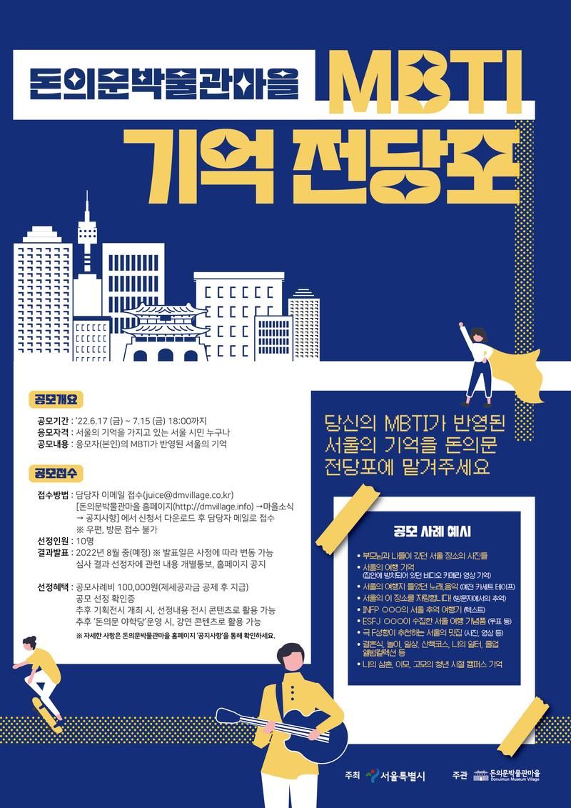돈의문 박물관마을에서는 본인의 MBTI가 반영된 서울의 기억을 공모받습니다.