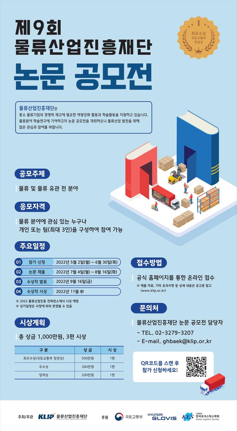- ☏ 물류산업진흥재단 논문공모 담당자 02-3279-3207 또는 ghbaek@klip.or.kr
