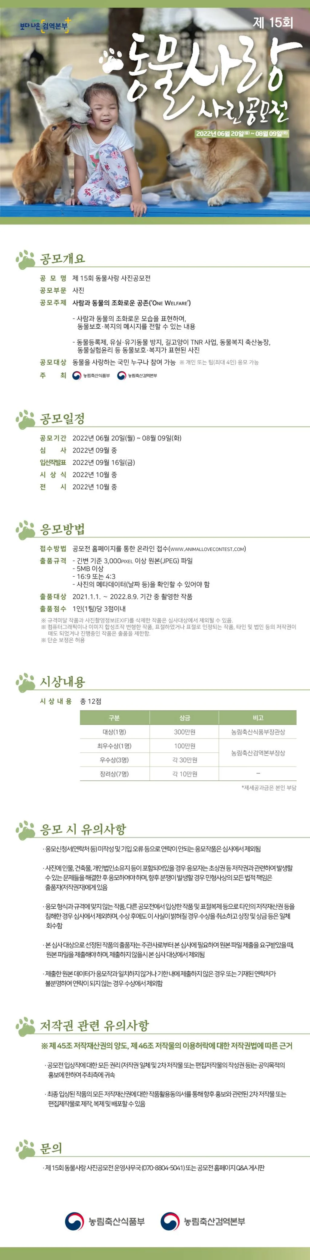 - ☏ 제 15회 동물사랑 사진공모전 운영사무국 070-8804-5041