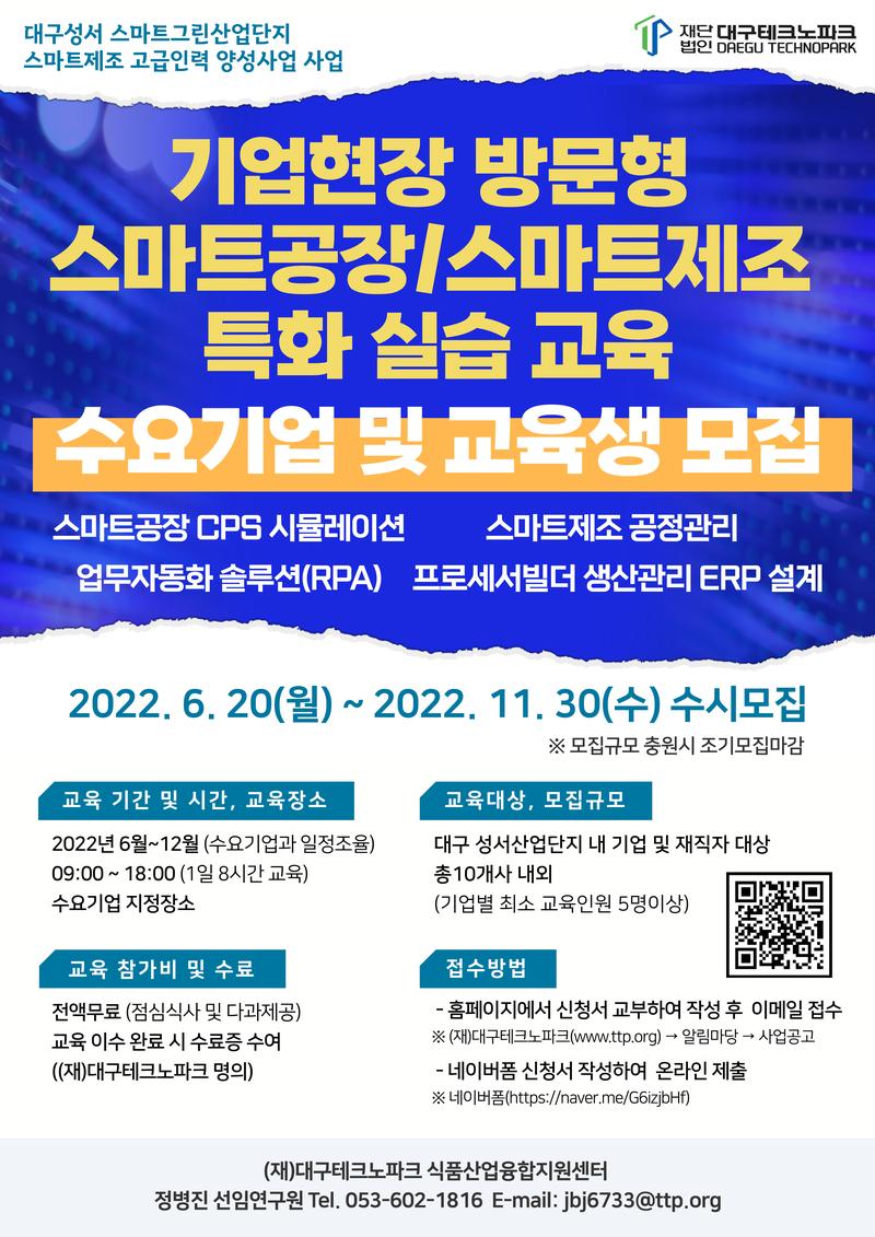 '대구성서 스마트그린산업단지 스마트제조 고급인력 양성사업'으로 국비지원 전액무료 교육 안내입니다.