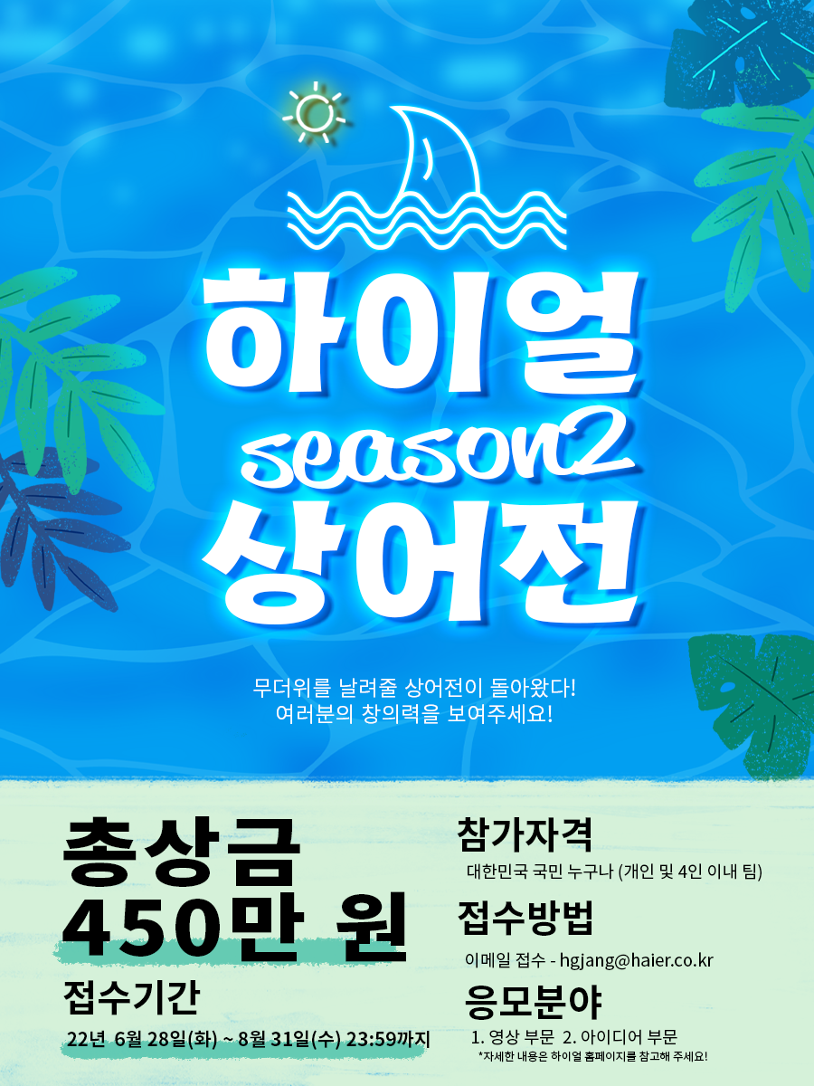 *필수 포함 해시태그 -#haier #상어전 #공모전