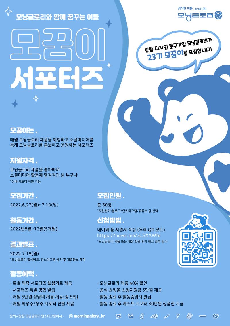 종합 디자인 문구기업 모닝글로리가 모꿈이 서포터즈를 모집합니다!