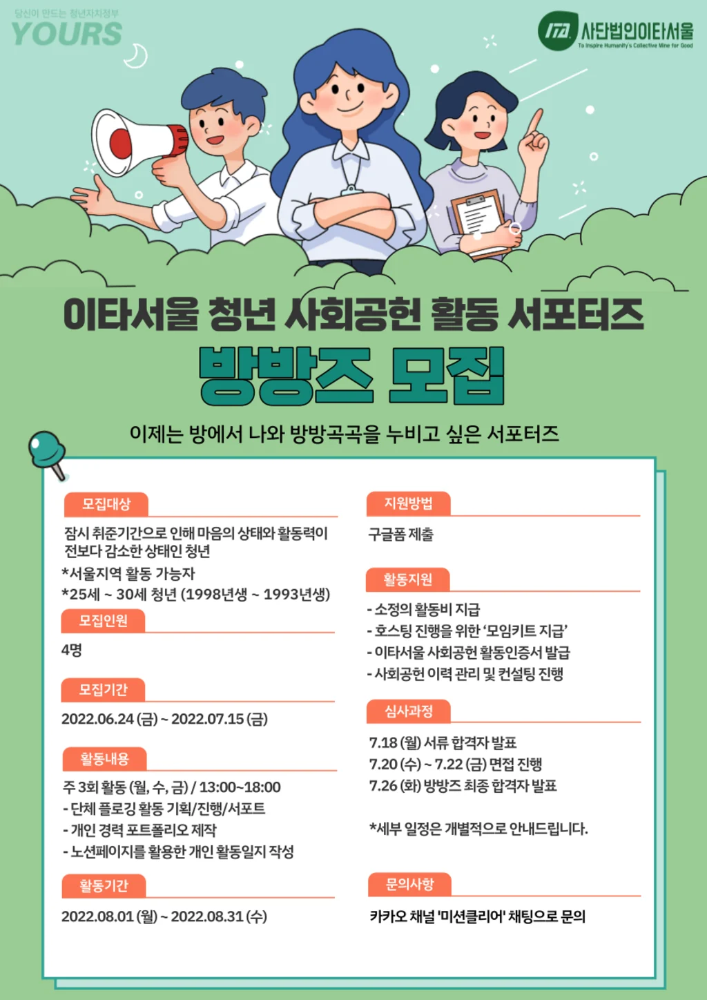 이타서울에서는 서울시 청년청과 함께 청년 지원 프로젝트를 시작합니다!