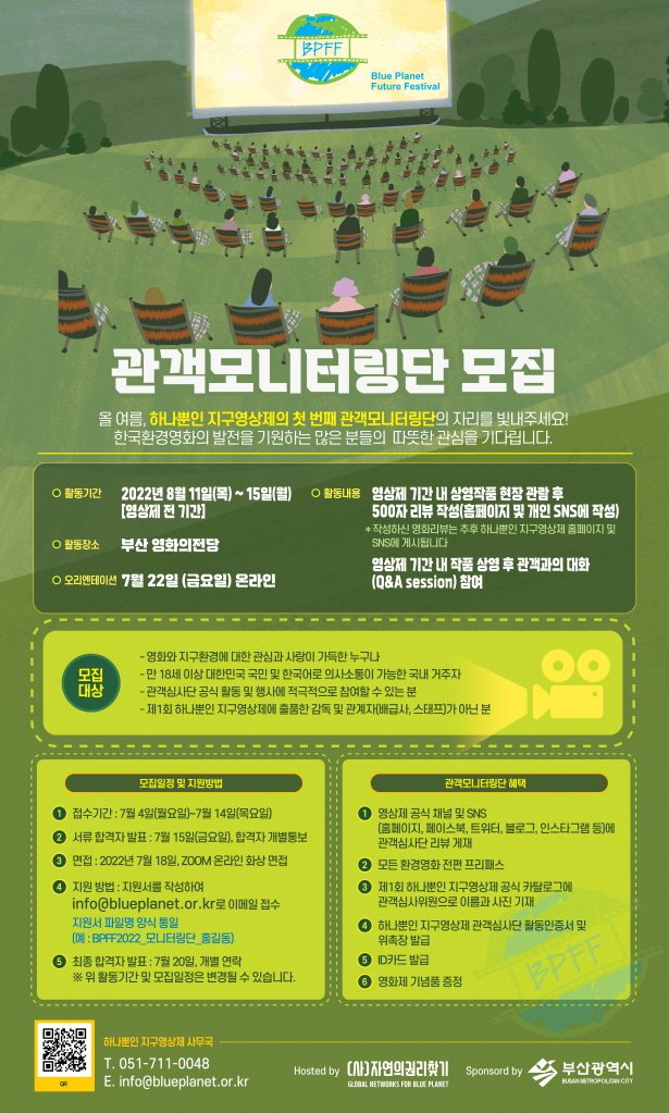 - 하나뿐인 지구영상제 사무국 : 051-711-0048 / info@blueplanet.or.kr