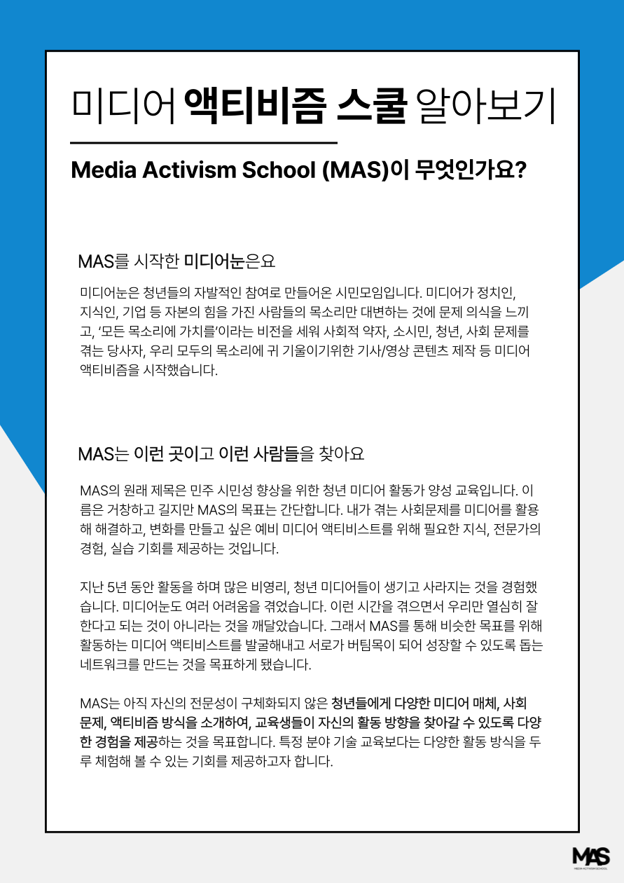[미디어 액티비즘 스쿨 교육생 모집]