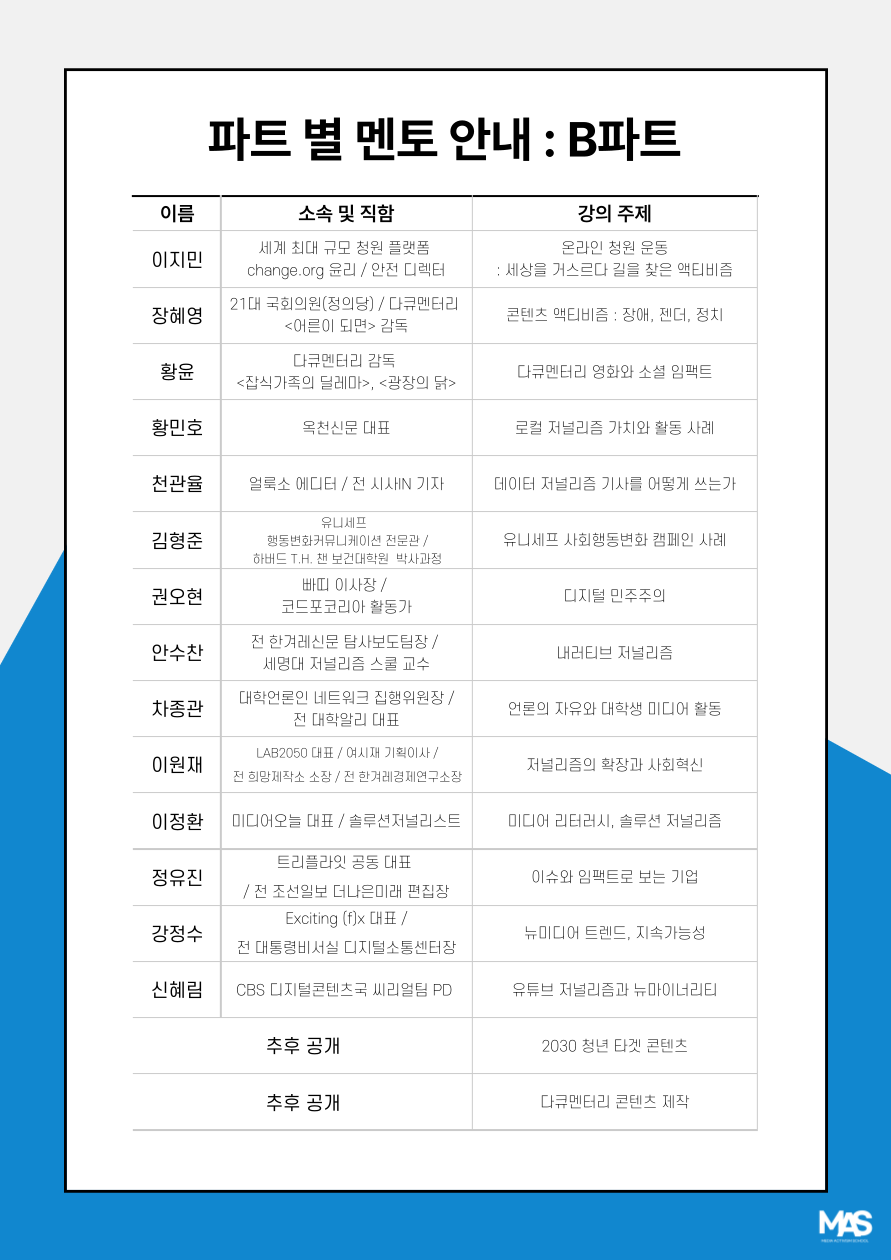 -미디어 분야 전문가 16인과 미디어눈 맨토가 참여하는 교육과 멘토링