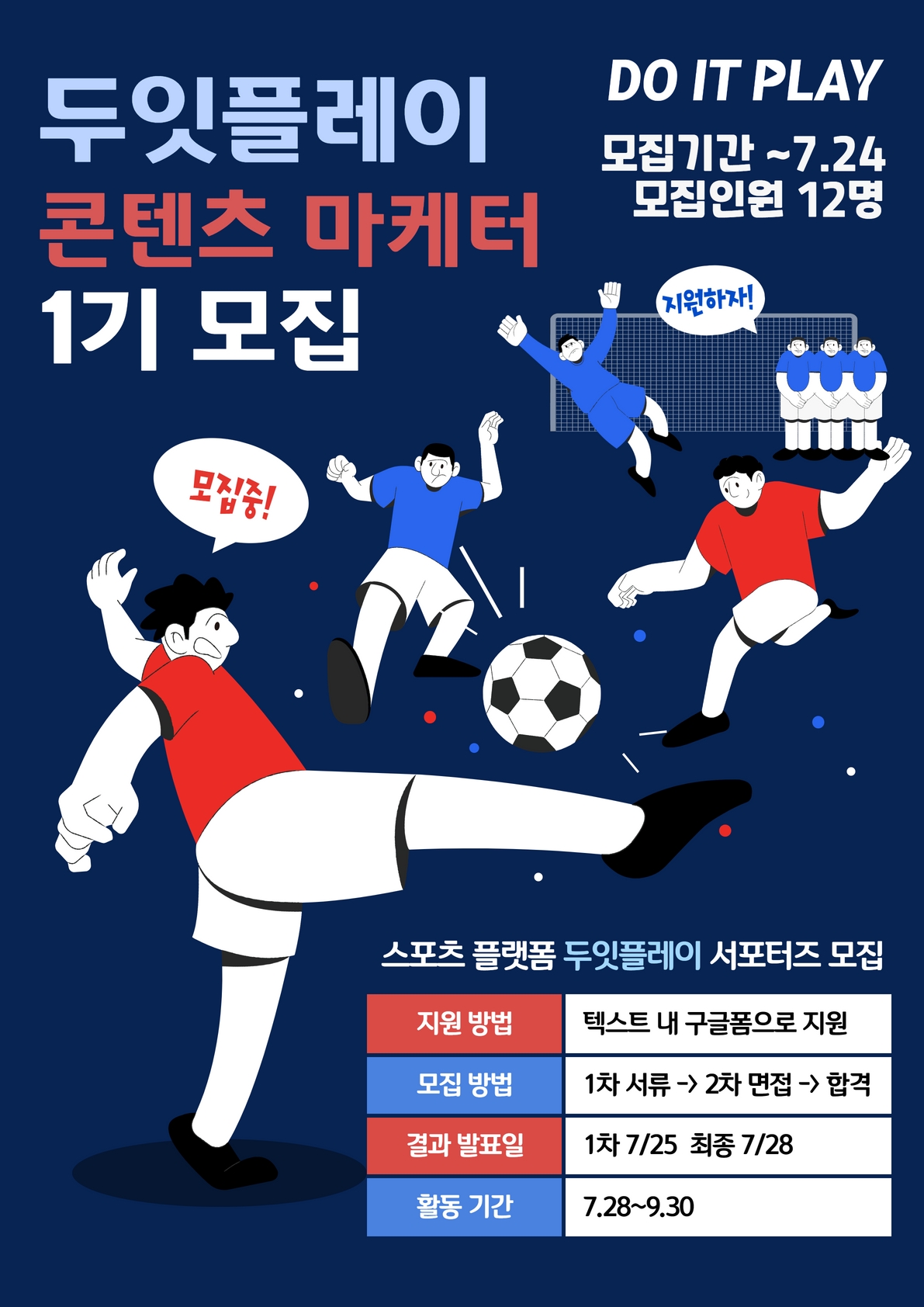 농구, 풋살 등 스포츠 매칭 플랫폼 스타트업, '두잇플레이'에서 콘텐츠 마케터 1기를 모집합니다!