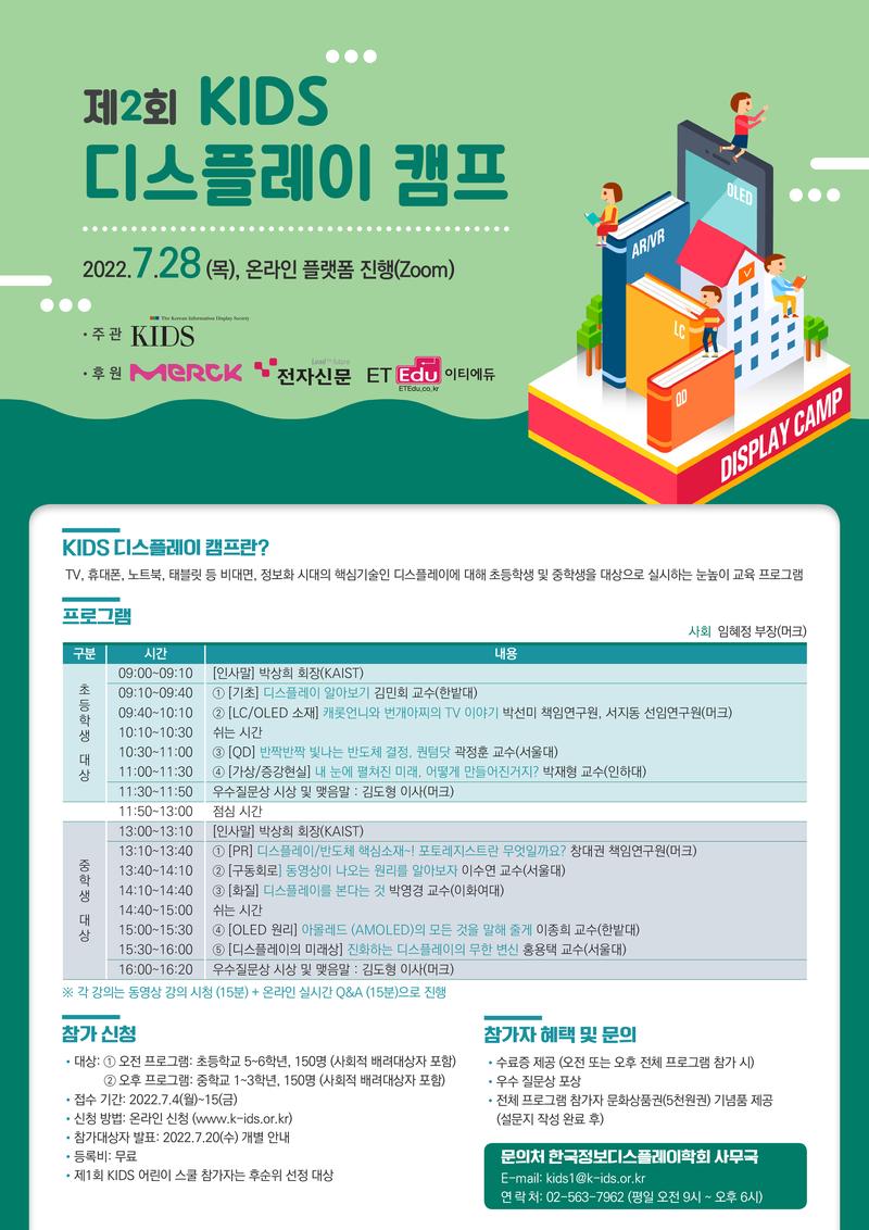 일정 2022년 7월 28일(목) 초등부: 09:00~11:50, 중등부: 13:00~16:20 부문별 오전·오후 분반운영)