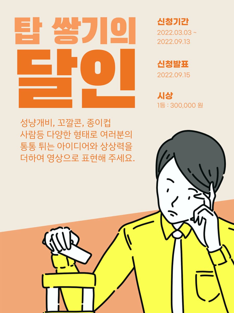 - 성냥개비, 꼬깔콘, 종이컵 사람 등 다양한 형태로 탑을 쌓아 여러분의 통통 튀는 아이디어와 상상력을 더하여 영상으로 표현해 주세요.