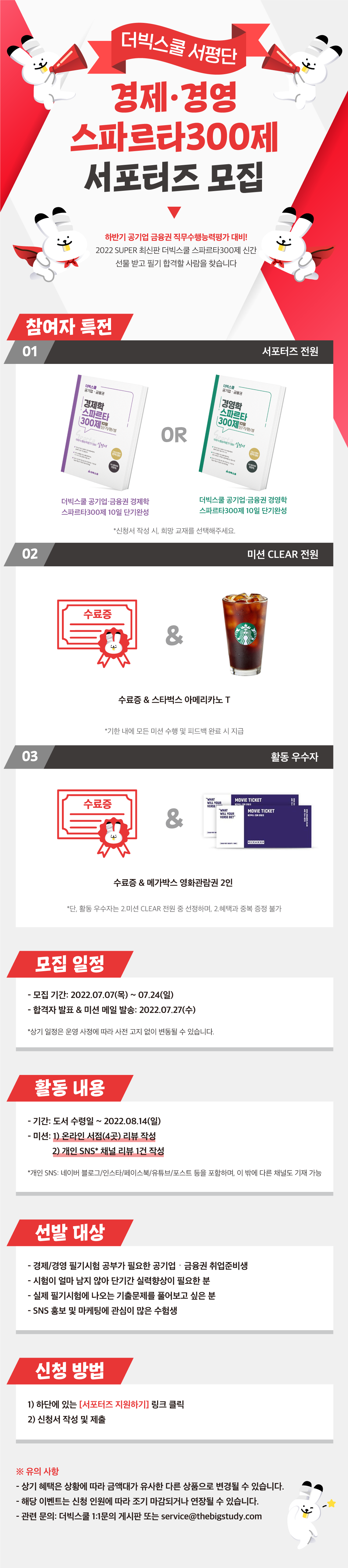 - 서포터즈 전원: 『경제학 스파르타300제 10일 단기완성』 OR 『경영학 스파르타300제 10일 단기완성』 최신판 1권