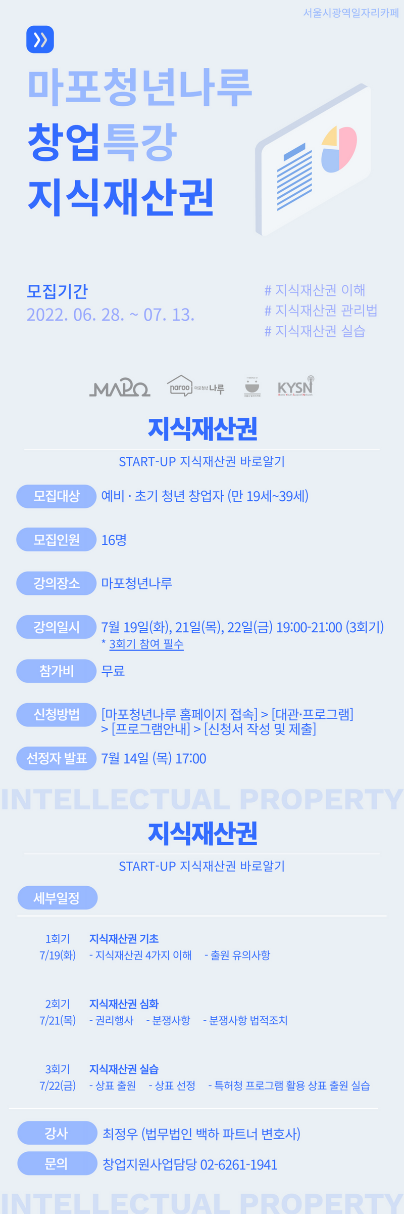 지식재산권 전문변호사와 함께하는 지식재산권 기초>심화>실습 특강입니다.