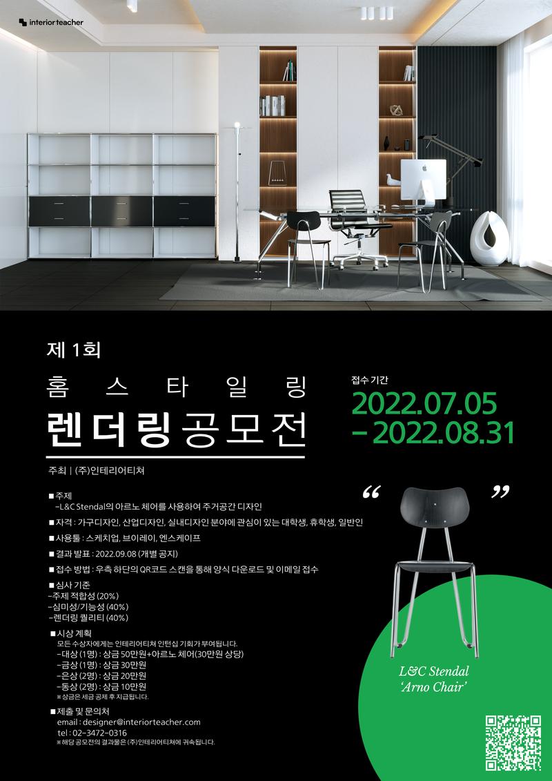 수상자에게는 상금과 함께 인테리어티쳐에서의 인턴십 기회까지 주어지니, 많은 참여 바랍니다.