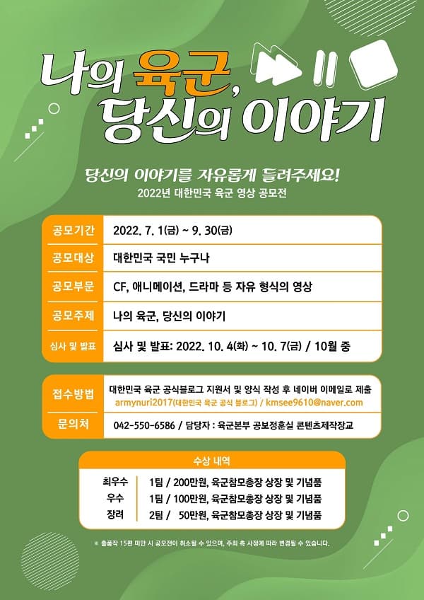 - 결과발표: 10월 중 육군 SNS 채널 및 홈페이지 게시