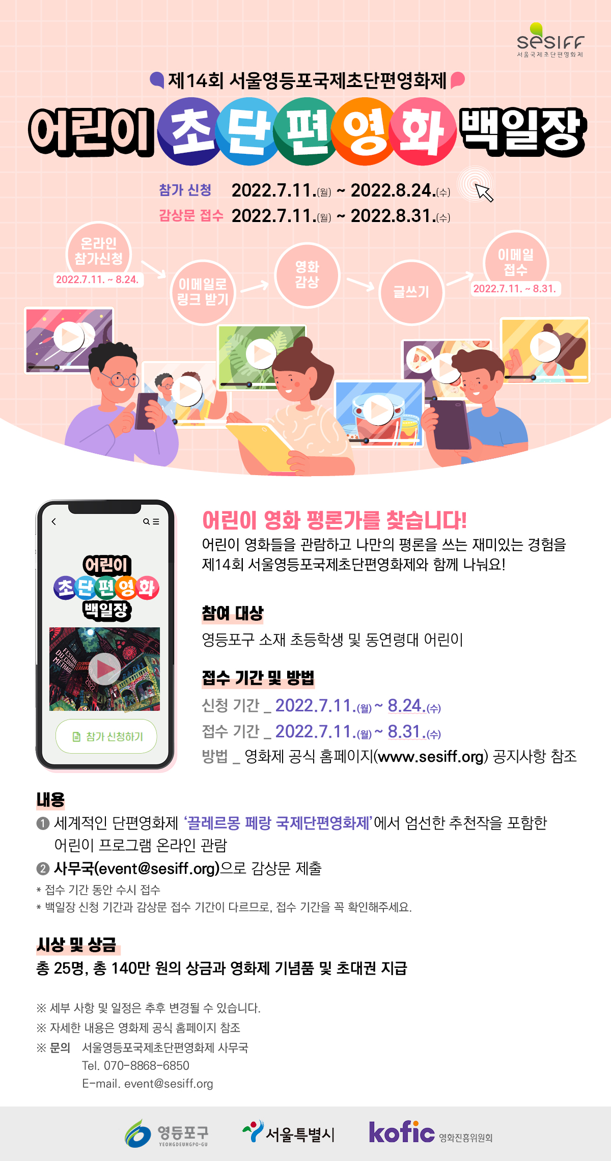 - 총140만 원의 상금과 영화제 기념품 및 초대권을 지급해드립니다!