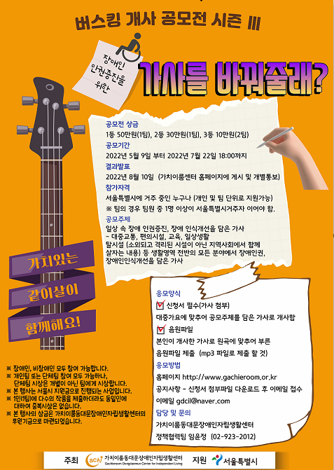 ※ 본 행사의 상금은 가치이룸동대문장애인자립생활센터의 후원기금으로 마련되었습니다.
