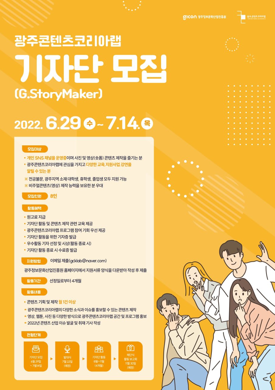 2022년! 광주콘텐츠코리아랩 기자단 활동의 기회를 놓치지 마세요!