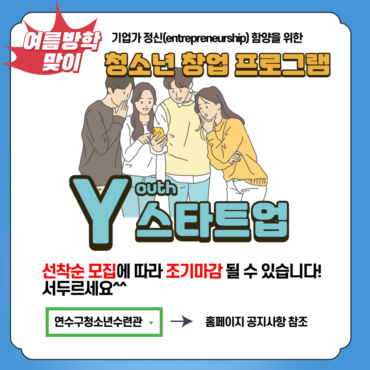 8월 여름방학을 맞아 연수구청소년수련관에서 창업 프로그램을 진행합니다.