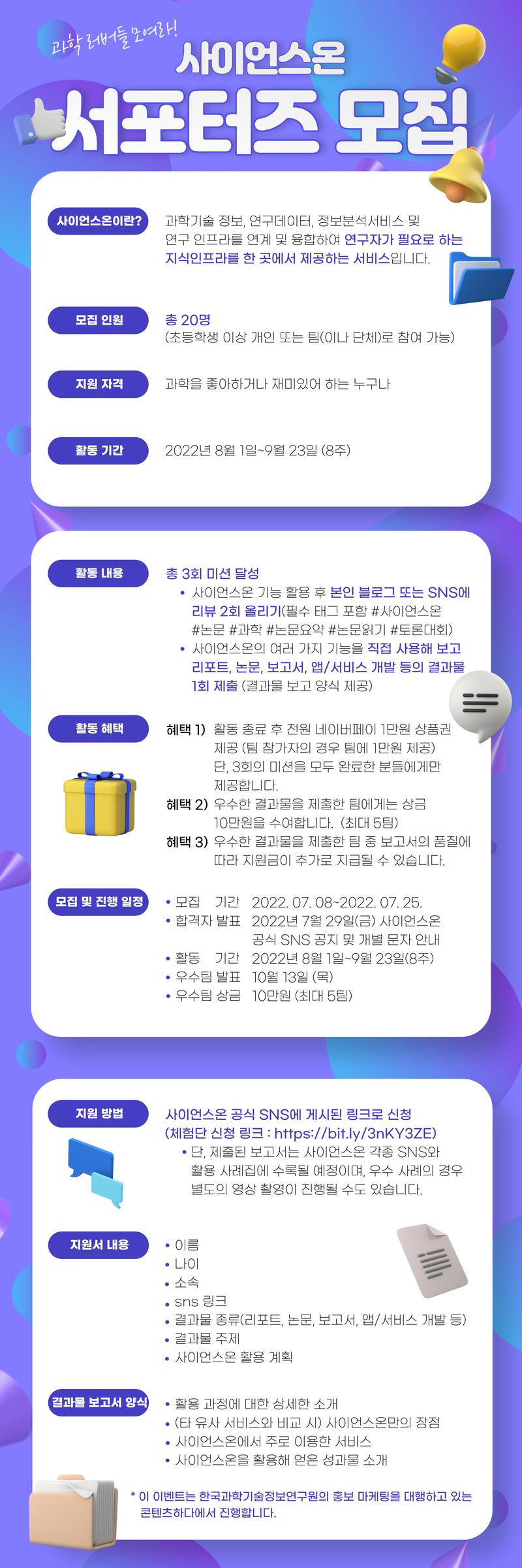 지금 바로 #서포터즈 신청하시고, 사이언스온의 #논문검색 #논문요약 #사이언스온트렌드 등의 다양한 서비스를 체험해 보세요!