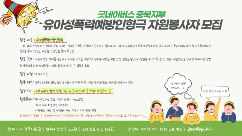 굿네이버스 충북지부 『유아성폭력예방인형극 자원봉사자 모집』