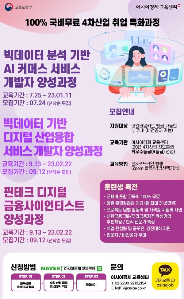 고용노동부 & 아시아경제 교육센터 / 디지털 핵심 실무인재 양성사업 (K-디지털)