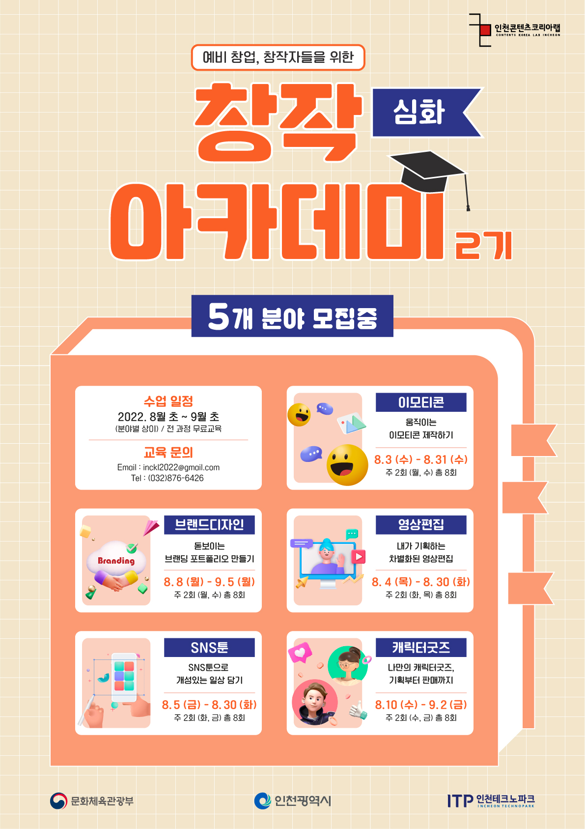 - 교육문의: 인천콘텐츠코리아랩 운영사무국 032-876-6426 / inckl2022@gmail.com
