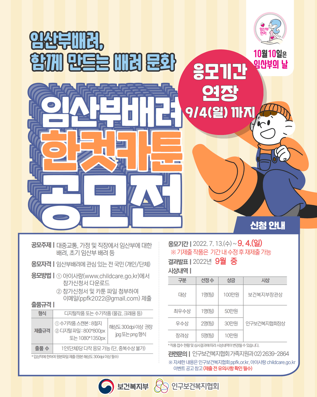 최우수상 | 1명(팀) | 50만원 | 인구보건복지협회장상 |