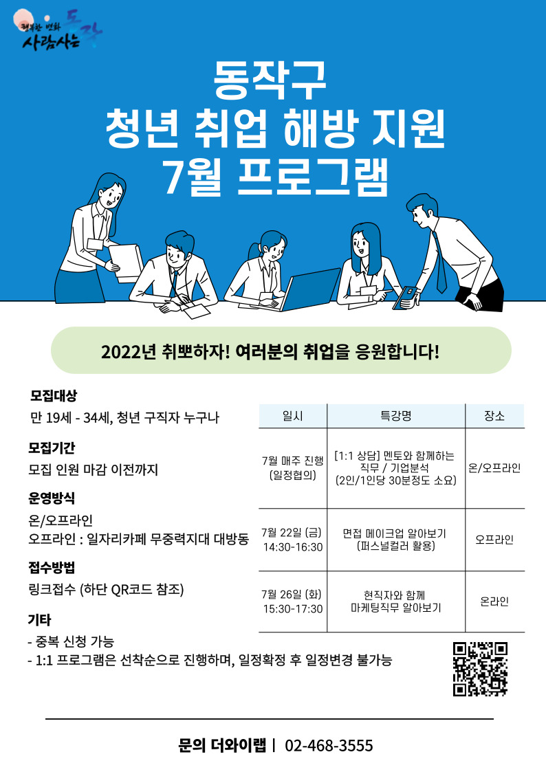 [🤚동작구만!🤚] 2022 청년 일자리카페 취업지원 7월 프로그램