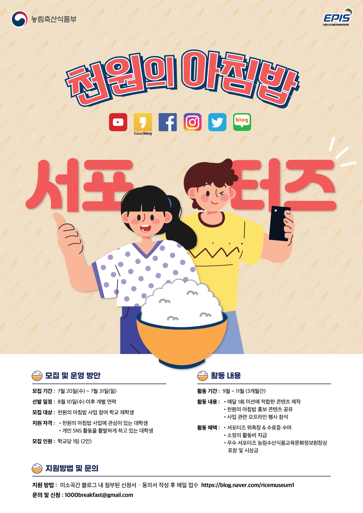 천원의 아침밥! 천원의 아침밥 서포터즈를 모집합니다.
