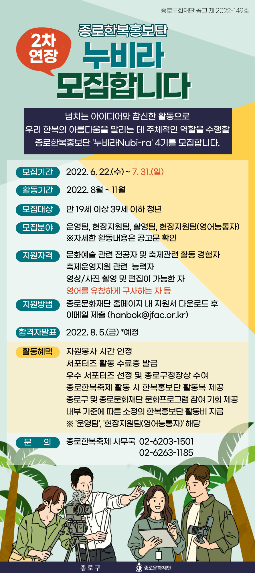 [종로문화재단] 2022 종로한복홍보단 누비라(Nubi-ra) 4기 2차 모집 변경안내 (~7/31)
