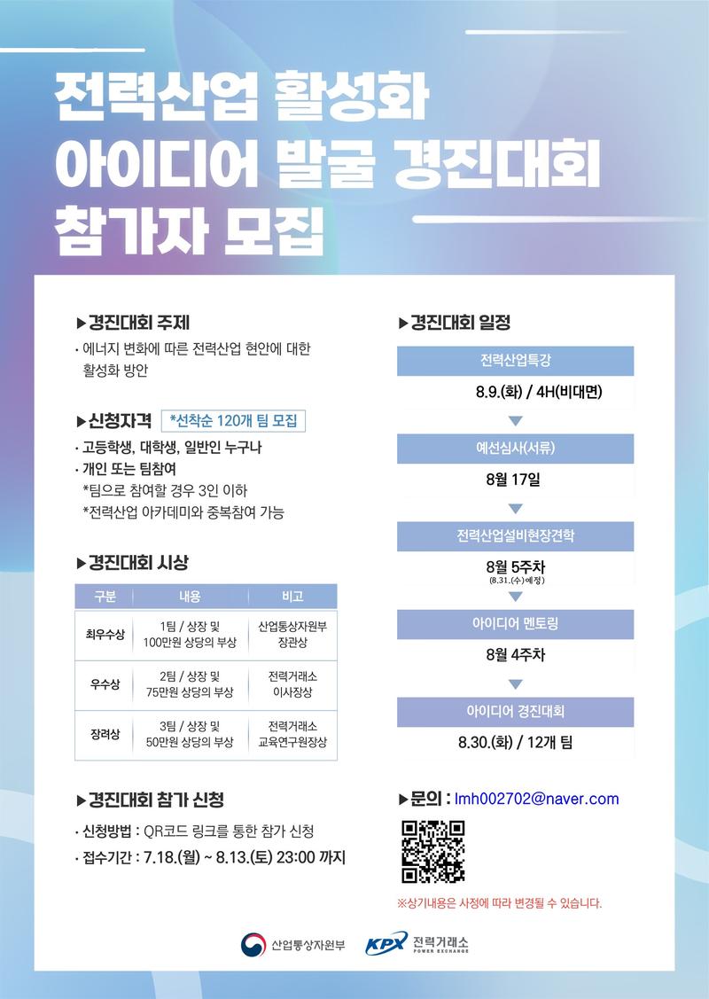 전력산업 활성화 아이디어 발굴 경진대회 참가자를 모집합니다!