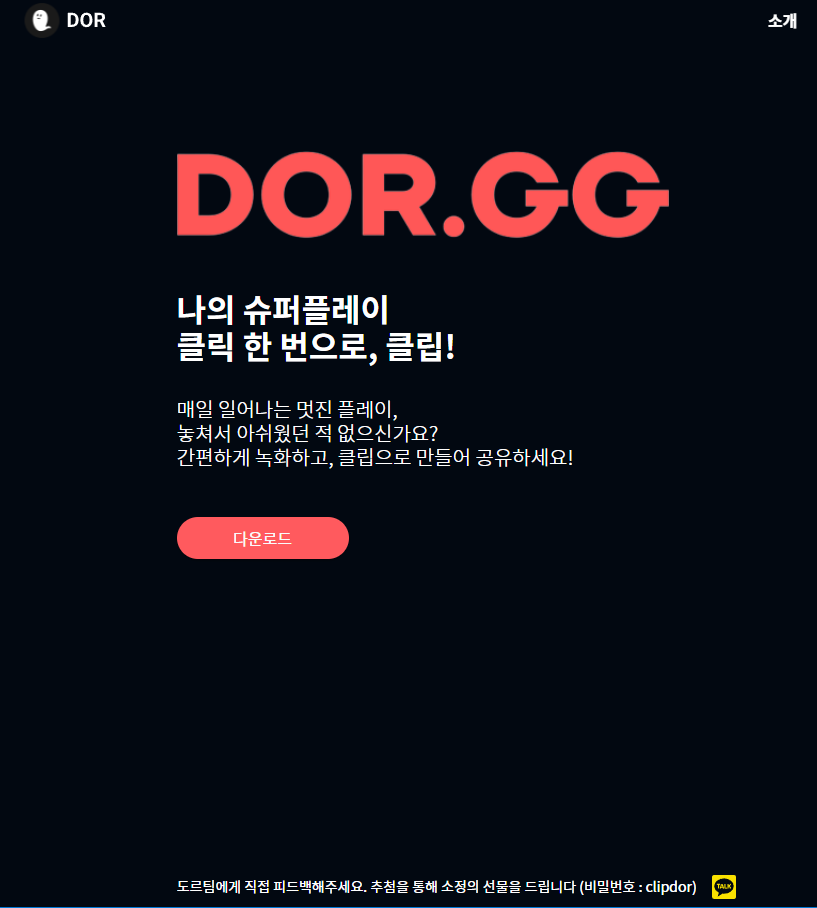 안녕하세요 게이머를 위한 서비스를 만들어 나가는 팀 DOR 입니다.