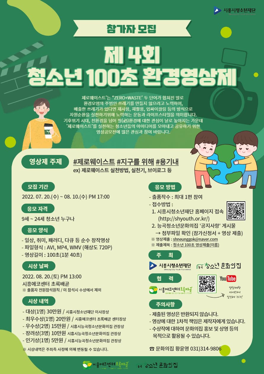 ♥ 제 4회 청소년 100초 환경영상제 참가자 모집 ♥