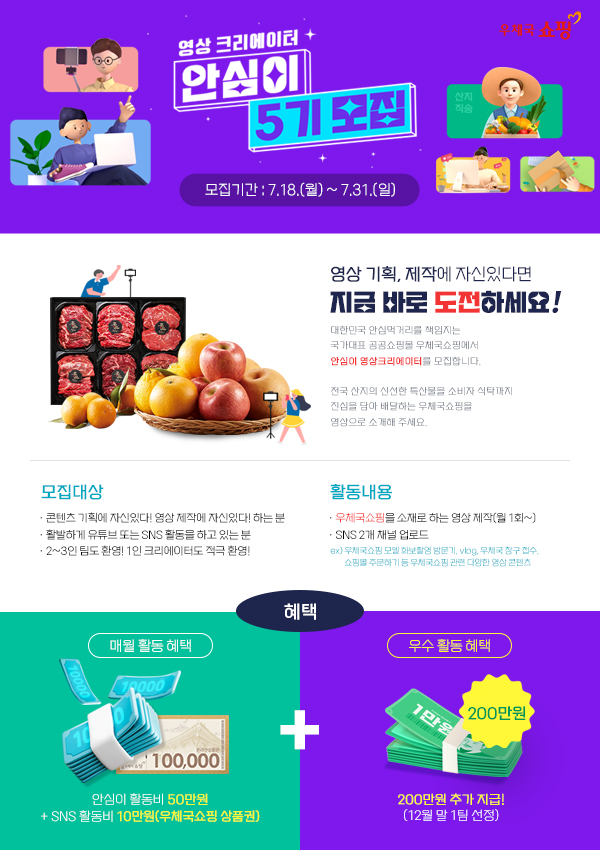 우체국쇼핑 영상 크리에이터 안심이 5기 모집
