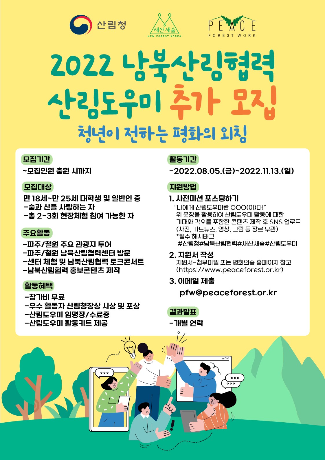 2022년 남북산림협력 산림도우미를 추가 모집합니다!(~모집 인원 충원 시까지)