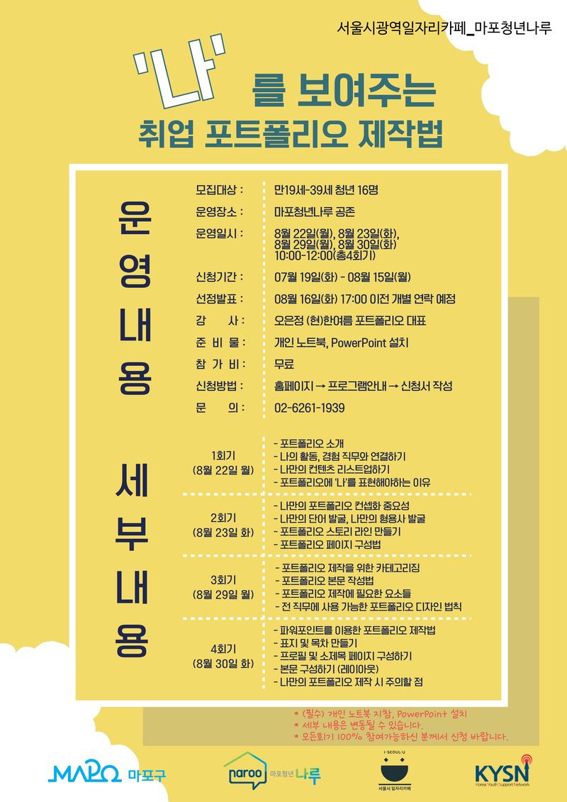 [마포청년나루] 나를 보여주는 취업 포트폴리오 제작법 참가자 모집